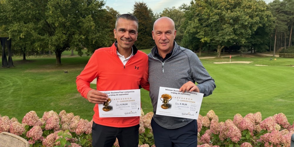 Het team van ING Bank, bestaande uit Roel Hulsbosch en Ton Vernooij, wint de 1e ronde van de BusinessTour 2025 met een gemiddelde score van 36 punten op basis van de score van de beste 2 spelers.